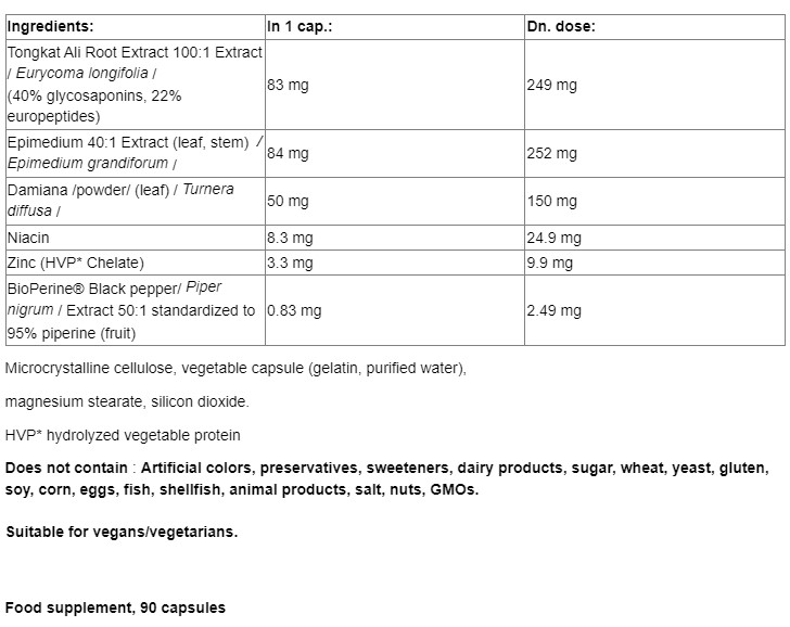 Съставки: биоперин, ниацин, цинк, епимедиум