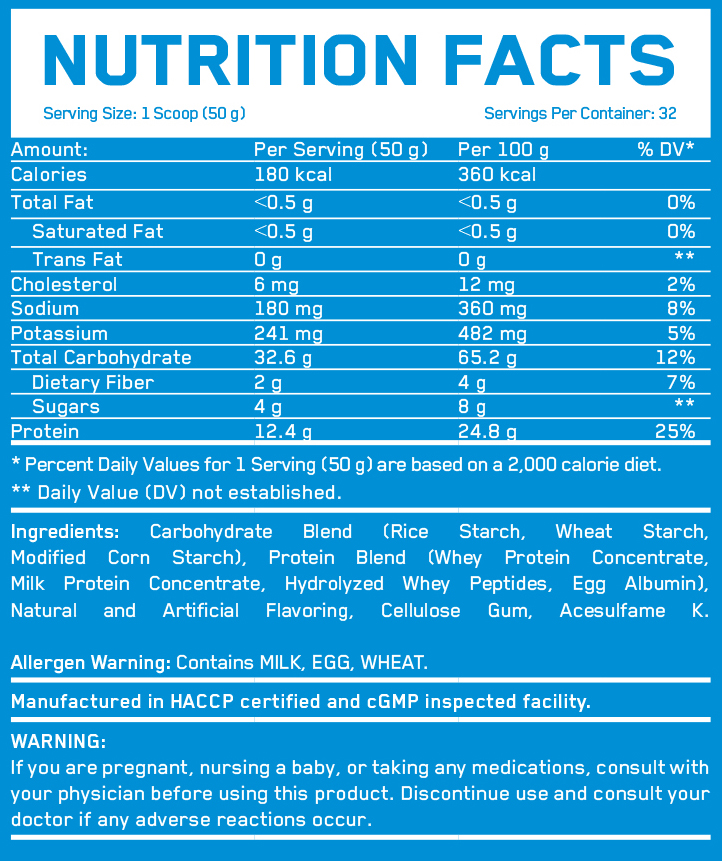 Смело мога да заявя че,това е най добрия гейнър които съм използвал досега ,вкуса и разтворимостта са перфектни състава наистина е уникален,съотношението цена дози е страхотно и трите расфасовки са супер изгодни ! Един наистина много качествен продукт,да не кажа силна дума според мен това е един от най добрите ефективни и качествени гейнъри за покачване мускулна маса на пазара !