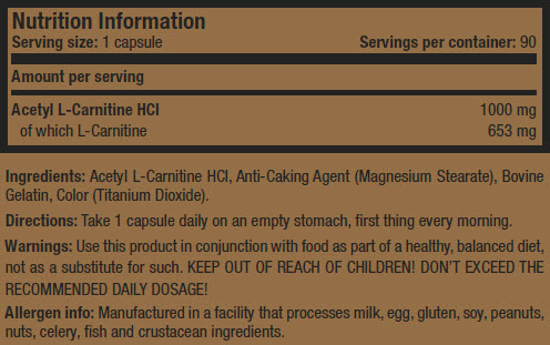 Цели 1000мг ацетил л-карнитин в една единствена капсула!