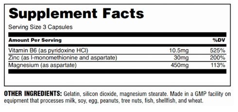 UNIVERSAL ZMA Pro е съдържа магнезий, който повишава производството на тестостерон в организма, оказва подкрепа върху сърдечната дейност и стимулира имунната система. Магнезий неутрализира риска от поява на травми и контузии по време на натоварващи тренировки, подобрява здравето на съединителната тъкан и подпомага мозъчната дейност.