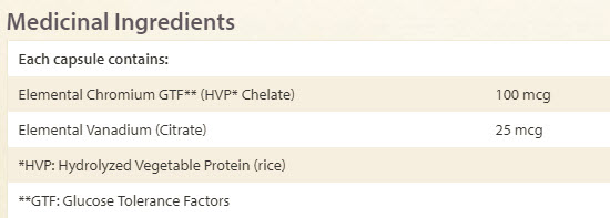 Съставки: елементарен магнезий GTF хелат, елементарен ванадий – цитрат