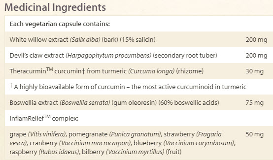 Тази формула съдържа още бяла върба, дяволски нокът, босвелия и комплекс InflamRelief, за да подсигури облекчаване на ставните болки свързани с остеоартрита и да предложи краткосрочно облекчение на болките в гърба.