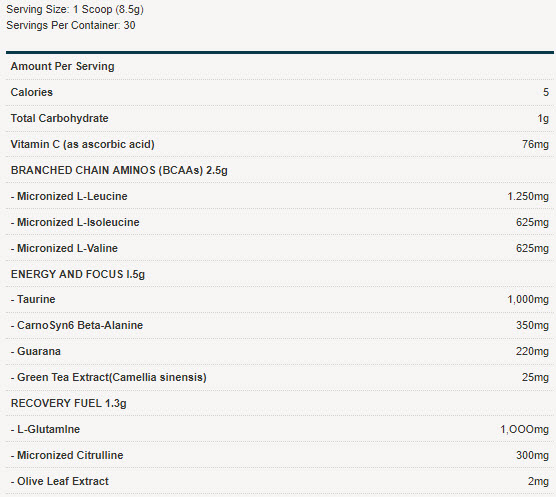 Съставки: ВСАА, зелен чай - екстракт, гуарана, цитрулин, глутамин, таурин