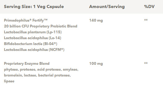 Тази формула съдържа 20 млрд. жизнеспособни бактерии (лактобацили и бифидобактерии) и патентована смес от храносмилателни ензими (Фитаза, протеаза, ацид протеаза, амилаза, бромелаин, лактаза, бактериална протеаза, липаза), за да осигури пълна подкрепа за оптимално и здравословно храносмилане.