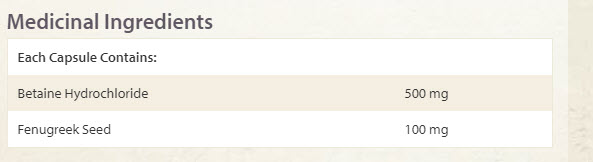 Свойства и характеристики на Betaine HCL от Natural Factors: