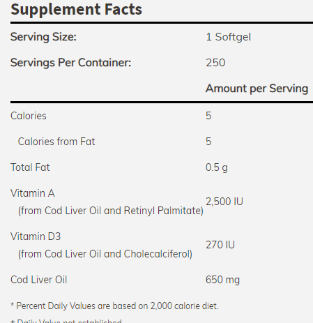 Съставки: масло от черен дроб на треска, витамин А, витамин D3