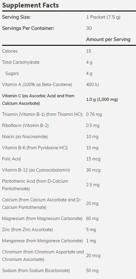 Начин на употреба: Приемайте по 1 доза дневно, разтворена в 250-300 мл вода. Използвайте 1 пакетче от 1 до 2 пъти дневно по време на хранене.