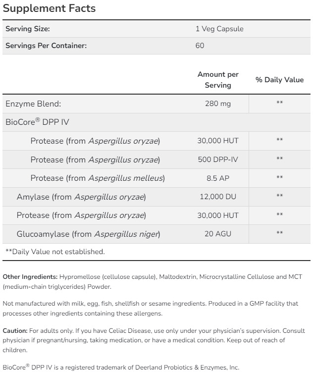 Gluten Digest, с BioCore® DPP IV е цялостна ензимна смес, формулирана за насърчаване на пълното разлагане на зърна от житни растения.