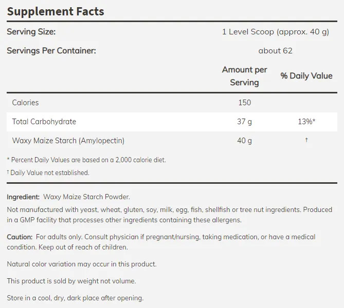 За разлика от малтодекстрина и декстрозата, Waxy Maize подкрепя ресинтезата на гликоген отлично, дори и след като сте приключили с тренировката си. По този начин имате устойчив източник на енергия през целия ден.