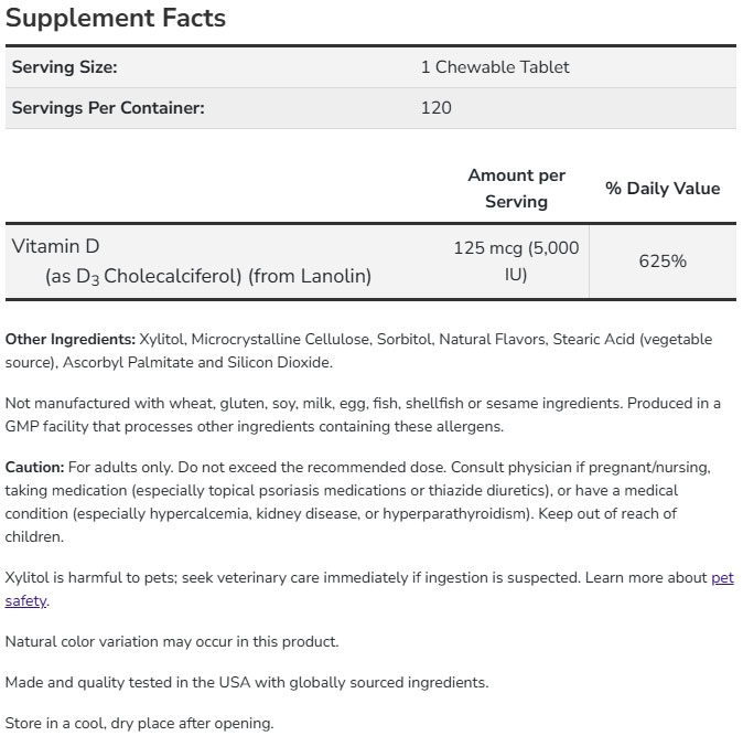 Съставки: витамин D3