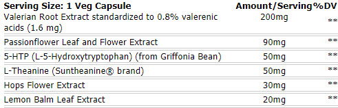 Съставки: хмел, дива маруля, пасифлора, екстракт от валериана, л-теанин