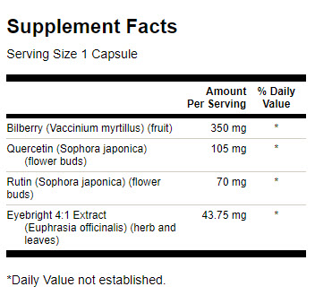 Този продукт на марката Swanson съдържа екстракт от еуфразия официналис, кверцетин, рутин и боровинки.