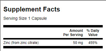 SWANSON Zinc Citrate 50mg. / 60 Caps е хранителна добавка, под формата на капсули, която съдържа висококачествен Цинк Цитрат, който стимулира имунната система и подобрява общото здравословно състояние
