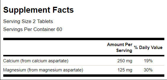Съставки: Калций (от калциев аспартат), Магнезий (от магнезиев аспартат)