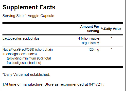 Съставки: NutraFlora® scFOS® (фруктоолигозахариди с къса верига), Lactobacillus acidophilus
