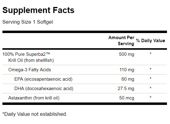 Съставки: Астаксантин (от крил масло), Омега-3 мастни киселини , 100 % чисто Superba2™ крил олио