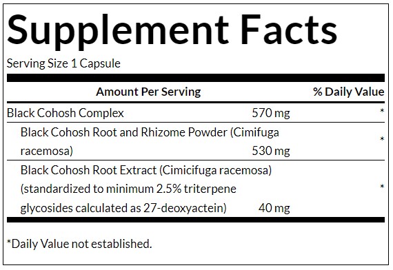 Съставки: Цимисфуга (Cimicifuga racemosa), Цимисфуга прах от корен, Цимисфуга екстракт от корен