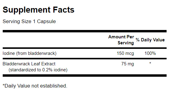 Съставки: Екстракт от листата на мехурчесто водорасло (стандартизиран да съдържа 0.2% йод)