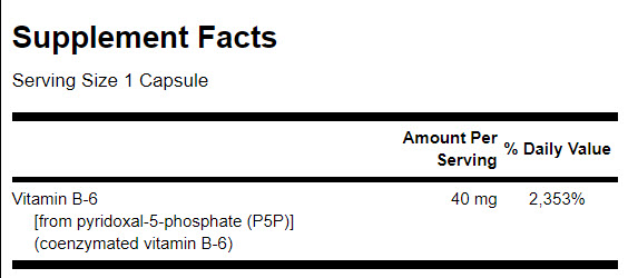 Съставки: Витамин B-6 [от пиридоксал-5-фосфат (P5P)] (коензимиран витамин B-6)