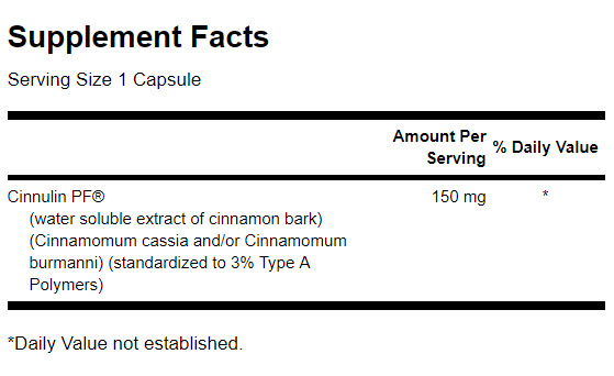 SWANSON Cinnulin PF Cinnamon Extract 150mg. / 120 Caps е хранителна добавка, под формата на капсули, която съдържа висококачествен екстракт от канела.