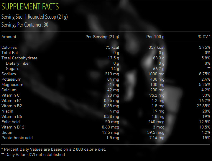 Формулата е обогатена с магнезий, калций, витамин В1, витамин В2, витамин В6, витамин В12, ннацин, биотин и фолиева киселина.
