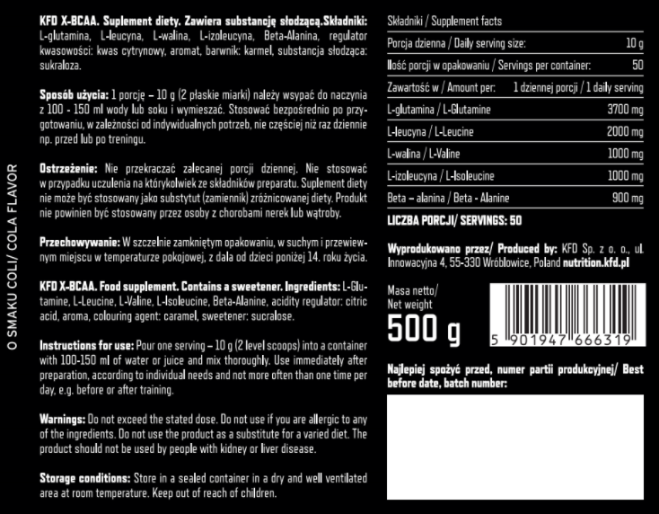 Комплексът X-BCAA се състои предимно от екзогенни аминокиселини, т.е. такива, които тялото не е в състояние да синтезира само и трябва да си ги набави чрез храната или с помощта на хранителни добавки. Добавянето на глутамин и бета-аланин увеличава ефекта на продукта, удовлетворявайки тези, които желаят по-бързо възстановяване на мускулите и по-голяма защита при интензивни тренировки.