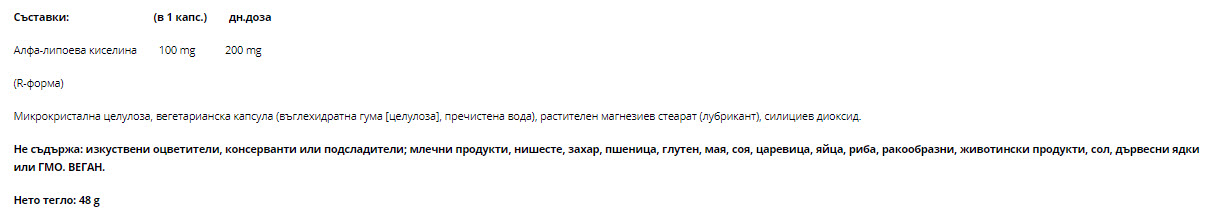 Алфа-липоевата киселина е хранително вещество с важно значение за превръщането на хранителните вещества в енергия и антиоксидантната защита на организма. Представлява много малка молекула, която лесно се абсорбира и преминава клетъчните мембрани. Работи отлично в комбинация с витамините Е и С, с които взаимно допълват действието си.