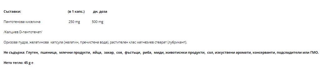 Съставки: Пантотенова киселина