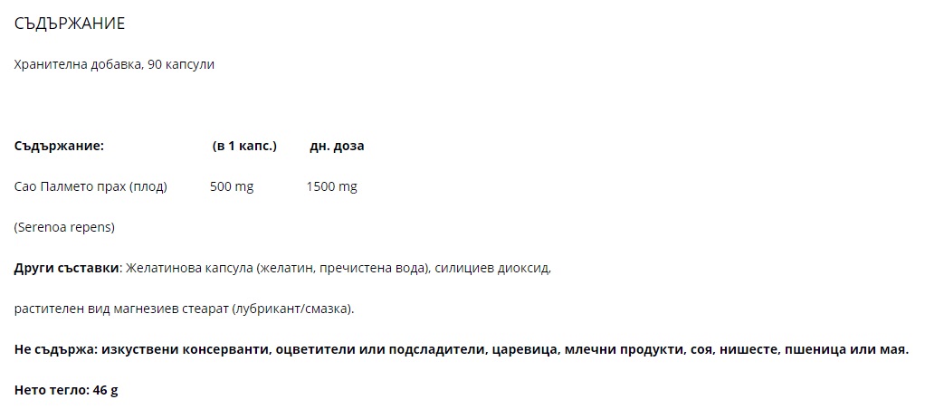 Съставки: сау палмето - прах
