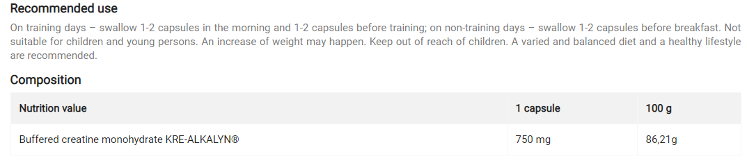 Свойства и характеристики на Kre-Alkalyn от Olimp: