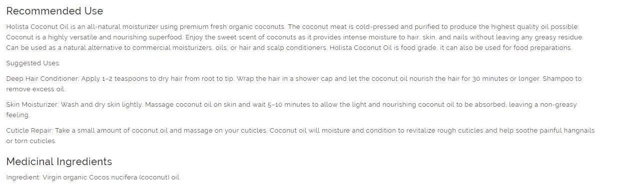 Свойства и характеристики на Holista Organic Coconut Oil от Natural Factors: