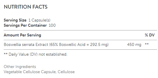 Екстрактът от босвелия е съставка, която действа обезболяващо и противовъзпалително на организма.