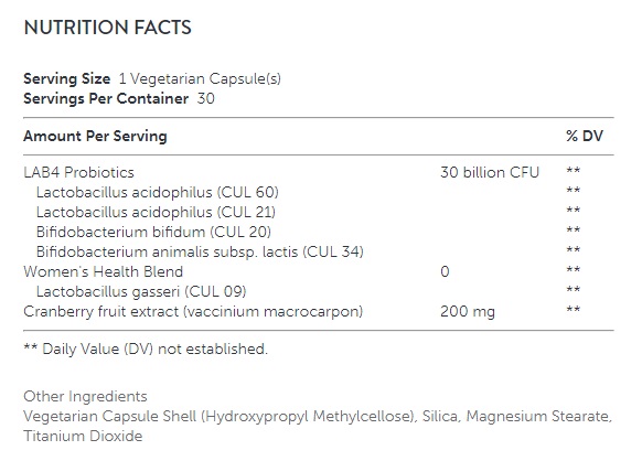 Клинично проучен пробиотик с множество щамове благоприятстващ женското здраве, способства функционирането на уринарната, храносмилателна и имунната система. Червената боровинка подпомага нормалното функциониране на уринарния тракт и пикочните пътища.