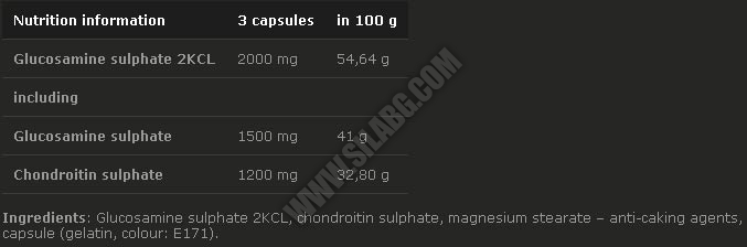 Съставки: глюкозамин сулфат, хондроитин сулфат