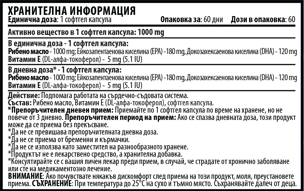 Омега-3 рибено масло съдържа докозахексаенова киселина (DHA) и ейкозапентаенова киселина (ЕРА). Омега-3 мастните киселини са основни хранителни вещества, които са важни за превенция и облекчаване на сърдечни проблеми.