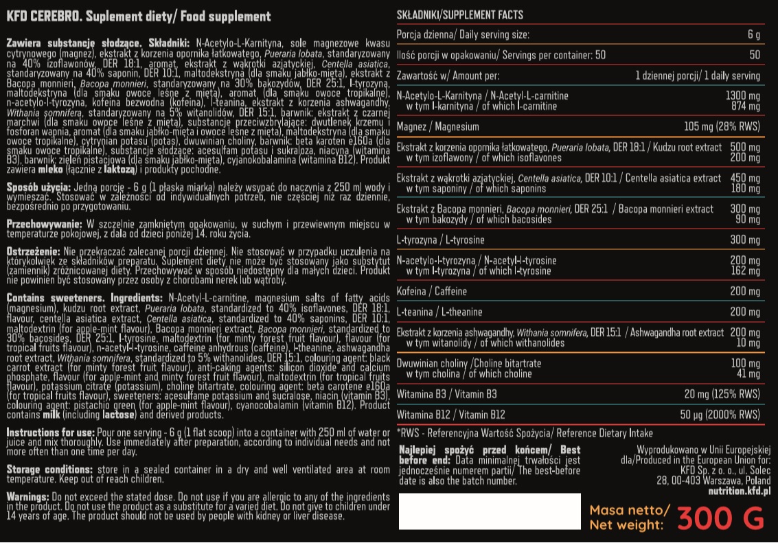 Свойства и характеристики на Cerebro oт KFD Nutrition: