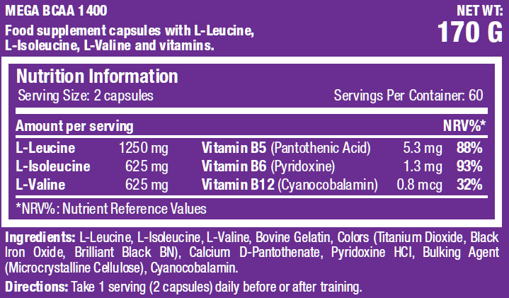 Свойства и характеристики на Mega BCAA 1400 от Scitec: