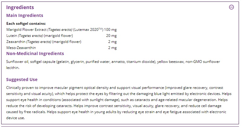 Клинично проучена патентована формула Lutemax ™, осигуряваща високи конценттрации на лутеин, зеаксантин и мезо-зеаксантин за поддържане на добро очно здраве в ерата на дигиталните технологии.