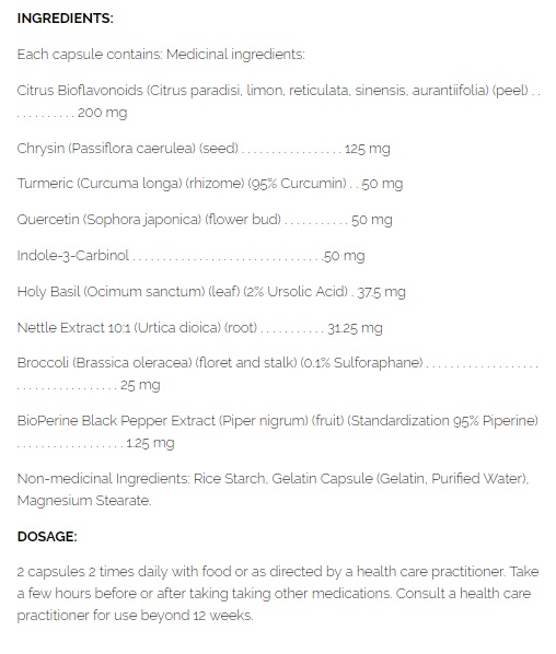 Съставки: екстракт от коприва, цитрусови биофлавоноиди, куркумин, биоперин, броколи - екстракт