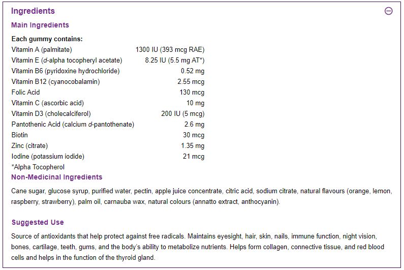 Всяка порция от две дражета доставя мощни количества D3 за здрави кости, имунна система, настроение и др., както и витамини от група В за поддържане на енергията и метаболизма. Тези сочни гумени бонбони с вкус на праскова, портокал и ягода съдържат и антиоксидантния витамин Е, витамин А за здравето на кожата и зрението, витамин С за подпомагане на имунната система и производството на колаген и биотин за здрава коса, кожа и нокти. Swanson Adult Multivitamin Gummies са веган и без глутен, с прозрачно етикетиране на всички съставки.