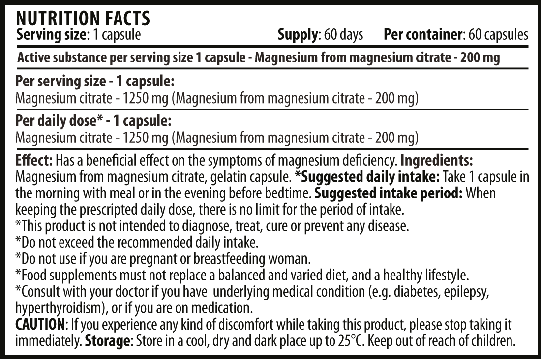 Съставки: магнезиев цитрат