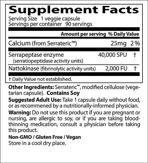 Cъcтaвĸи: Калций, ензим серапептаза, натокиназа, серутерна, модифицирана целулоза (вегетарианска капсула).