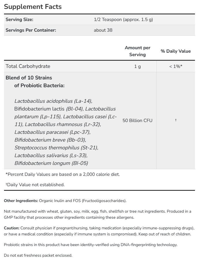 NOW Probiotic-10™ 50 Billion / 2 OZ / 57 G играе важна роля в доброто усвояване на витамините, минарелите, както и подобрява действието на храносмилателните ензими. Когато пробиотиците са в достатъчно количество, имунната ни система е по-добре защитена от вредните бактерии и токсини. Също така с този здравословен пробиотичен коктейл вие си гарантирате и безценна помощ в усилията да намалите телесното тегло и да го задържите в нормалните граници. Продуктът се усвоява лесно от организма и е с много приятен вкус. Благодарение на мощната му формула, ефектът от приема ще бъде забележим много скоро.