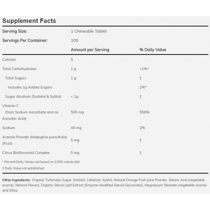 NOW Vitamin C-500 Chewable / 100 Tabs съдържа витамин С, който има силно изразени имуностимулиращи свойства, както и е от голяма полза за здравето на костите и зъбите.