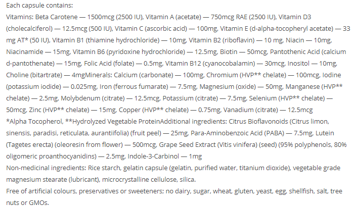 Други съставки: титаниев диоксид, микрокристална целулоза, Оризово нишесте, желатин, силициев диоксид., растителен клас магнезиев стеарат, пречистена вода