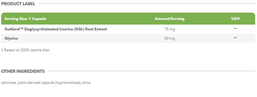 DGL е съкращение за деглициризиран екстракт от женско биле. Коренът от женско биле се е използвал с най-различни здравословни цели през хода на човешката история, като една от най-отявлените му ползи е като помощно средство за храносмилането. NATURES WAY DGL Ultra съдържа GutGard DGL (патентован корен от женско биле за изключително силно успокояващо облекчение на храносмилането).