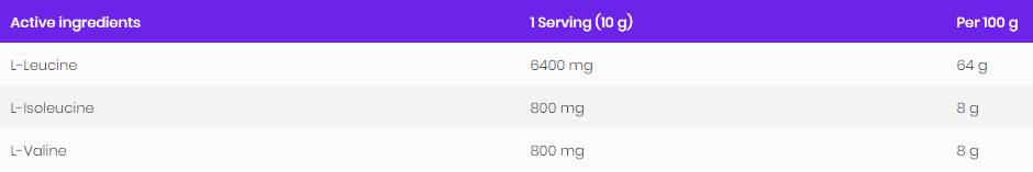 Съставки: L-левцин, L-изолевцин, L-валин.