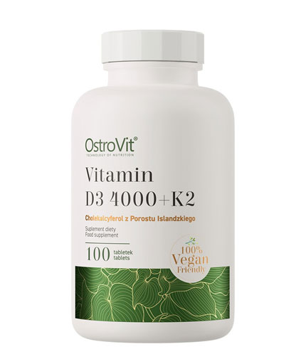 OSTROVIT Vitamin D3 4000 + K2 100 mcg 100 tabs е уникален комплекс от витамини, който ще ти помогне да заздравиш костите си и да подпомогнеш работата на имунната система.