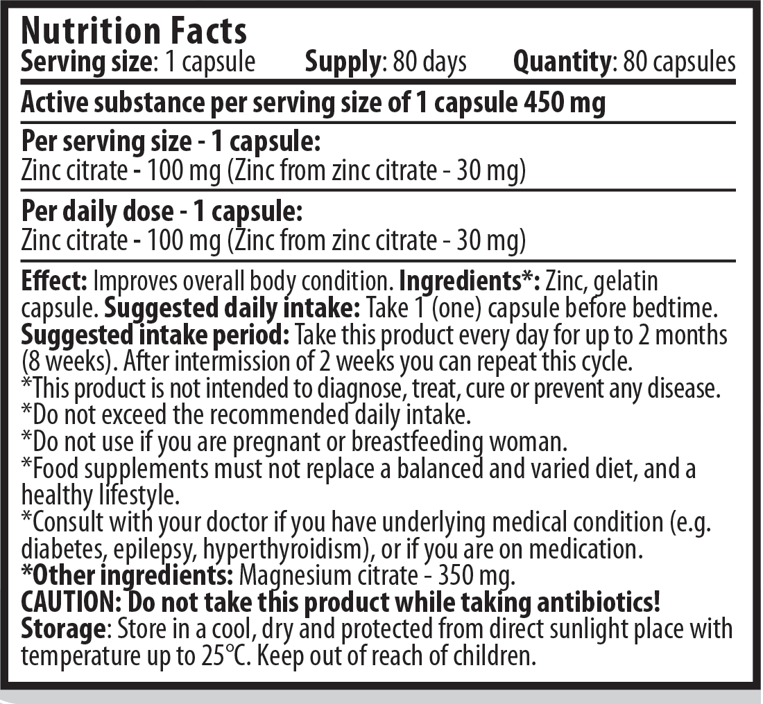 Cvetita Herbal Zinc 80 caps е висококачествен цинк, под формата на капсули, който ще ти осигури необходимата дневна доза, за стимулиране на имунната система и подобряване на цялостното състояние на тялото.