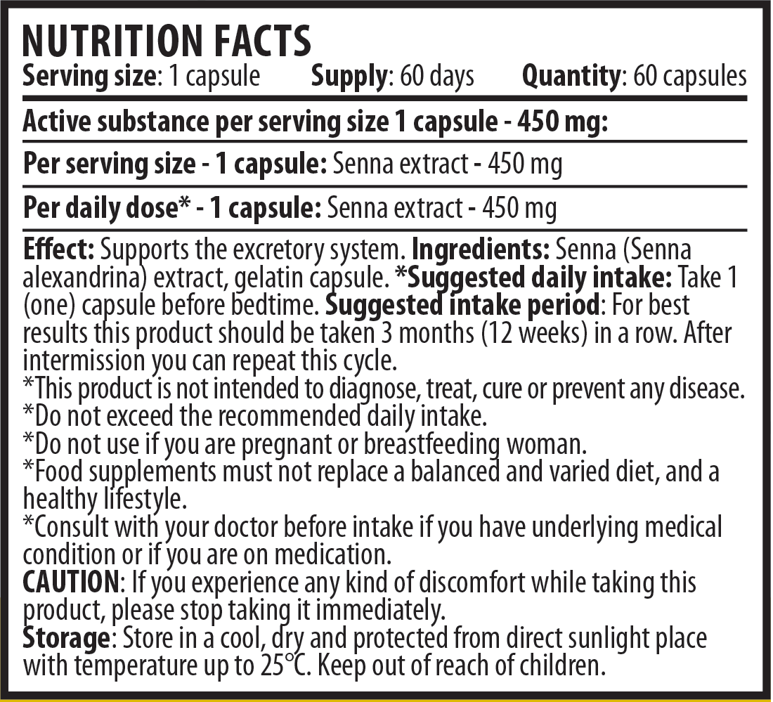 Cvetita Herbal Senna 60 caps съдържа висококачествен екстракт от сена, която от векове се използва поради натуралните си слабителни свойства. За разлика обаче от други сходни добавки, сената е изключително щадяща към перисталтиката и не предизвиква неразположение.